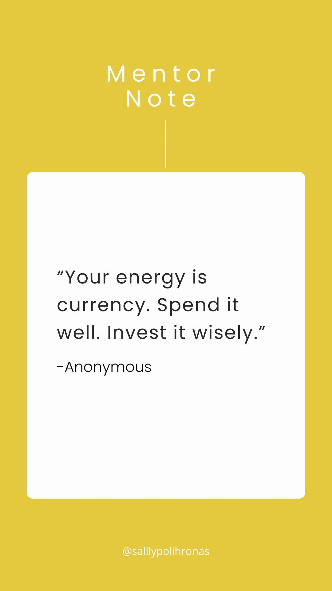 “ Your energy is currency. Spend it well. Invest it wisely.” - Anonymous