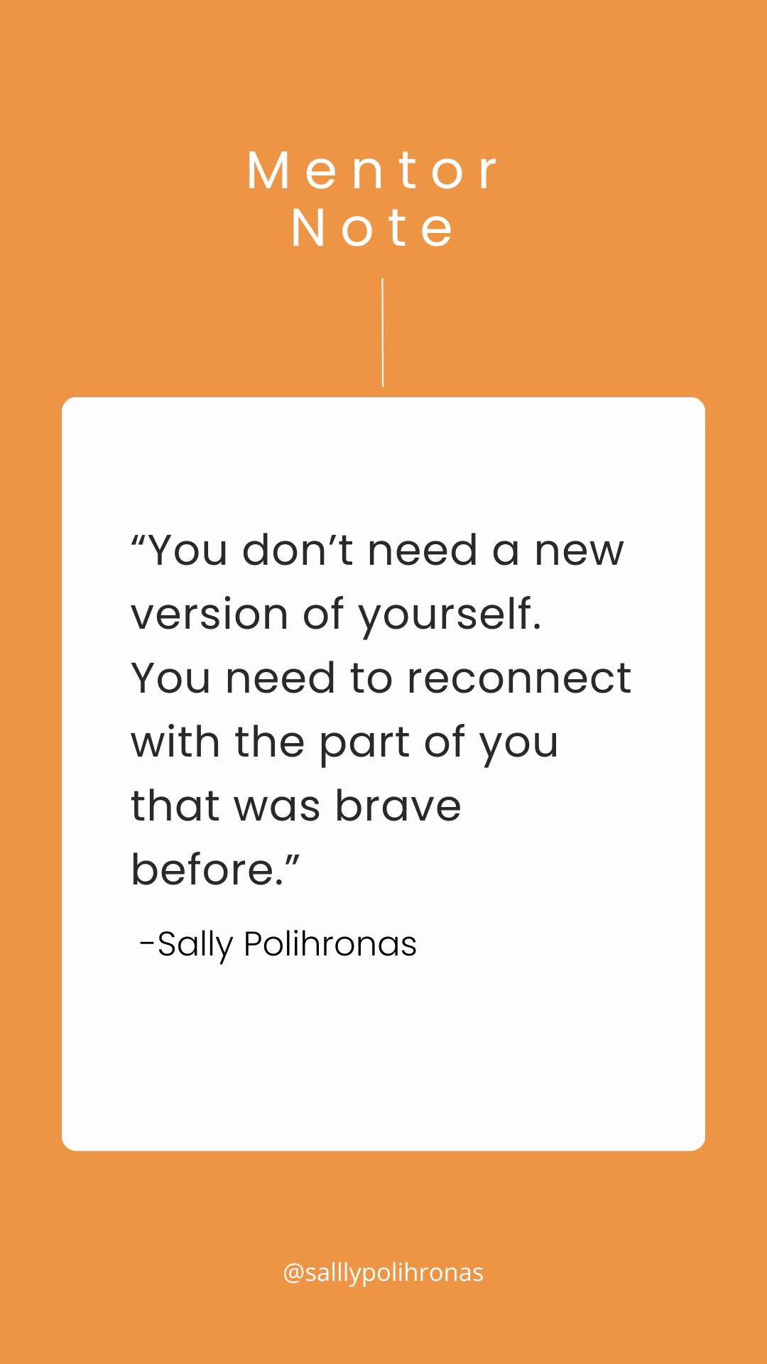 “You don’t need a new version of yourself. You need to reconnect with the part of you that was brave before.”- Sally Polihronas