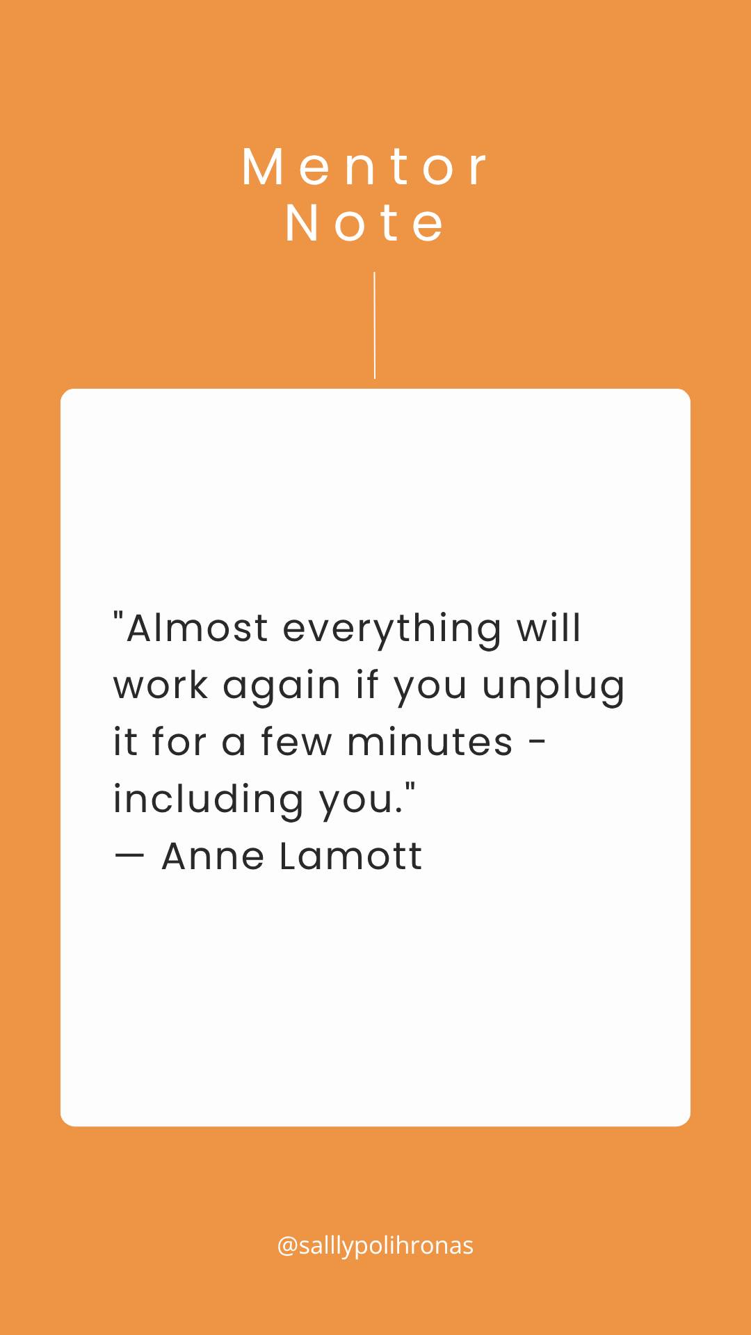 "Almost everything will work again if you unplug it for a few minutes - including you." - Anne Lamott